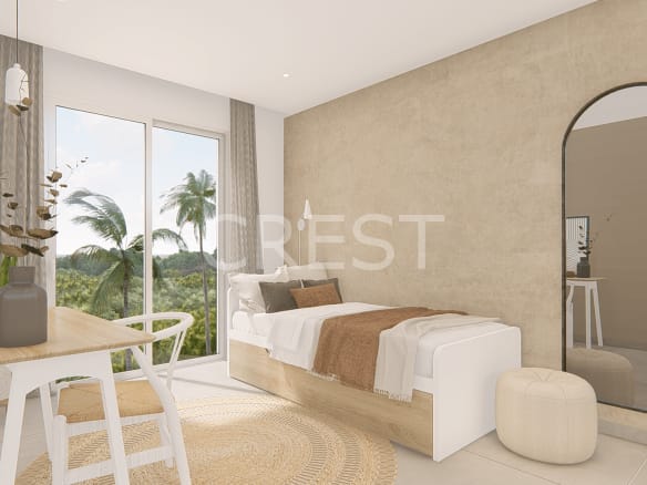 The residential complex is located in Guardamar del Segura, with all kinds of services and amenities. At the same time, thanks to the proximity of El Moncayo beach, you will be able to go for walks or cycle tours and enjoy the best climate on the Costa Blanca.It is a private residential, made up of 114 homes of 2 or 3 bedrooms, designed in a minimalist way and with high quality standards.A parking space is always included.Would you like more information about this offer? Fill in the attached form and we will contact you as soon as possible.