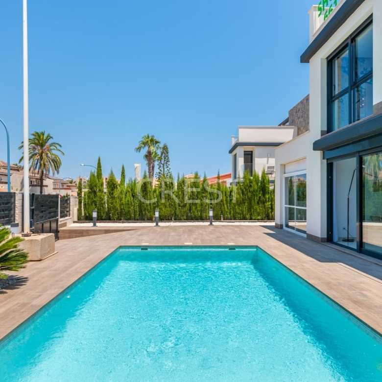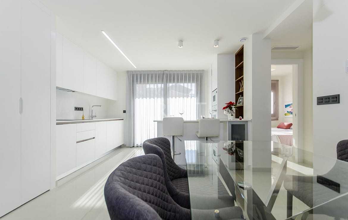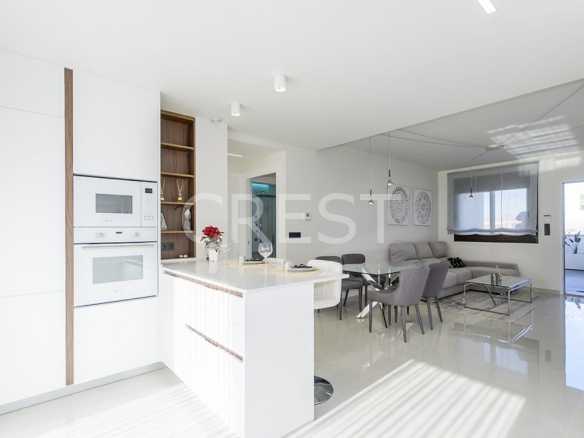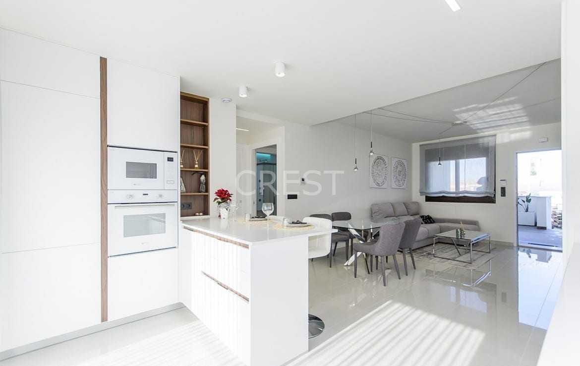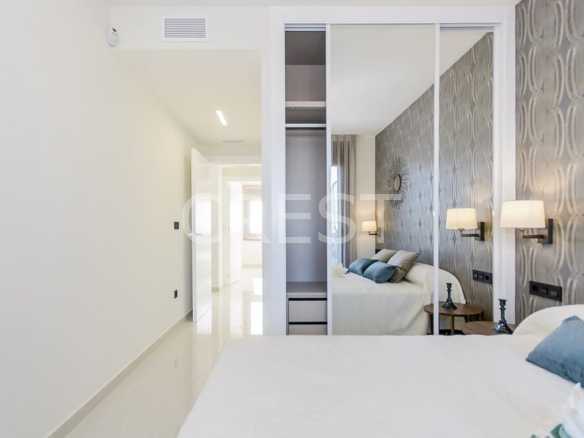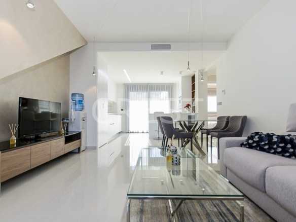 This modern new-build complex is located in a pleasant, quiet neighbourhood, opposite the salt lakes of Torrevieja. An ideal place for a luxury holiday in a natural environment or for those who do not want to live too far from the beautiful beaches of Orihuela Costa. This residence, is made up of 98 apartments, has a beautifully landscaped communal garden with two large swimming pools and green areas. All amenities are close by with a large selection of restaurants, shopping centres and an abundance of leisure facilities. Located on the ground floor, this apartment has 2 bedrooms and 2 bathrooms and 2 private large terraces, one with a view of the swimming pool and garden. The residence is delivered with pre-installation for air conditioning and there is the option of an underground parking space with storage room.
