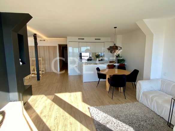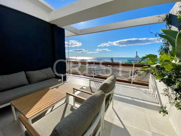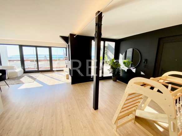 Discover your dream home in this impressive 120 m² penthouse, perfectly situated to offer stunning sea views. This property boasts four spacious double bedrooms and two full bathrooms, meticulously renovated and adorned with unique interior design touches. The open kitchen seamlessly flows into the living room, creating a cozy yet modern ambiance ideal for entertaining or relaxing.