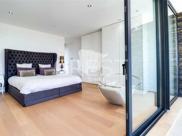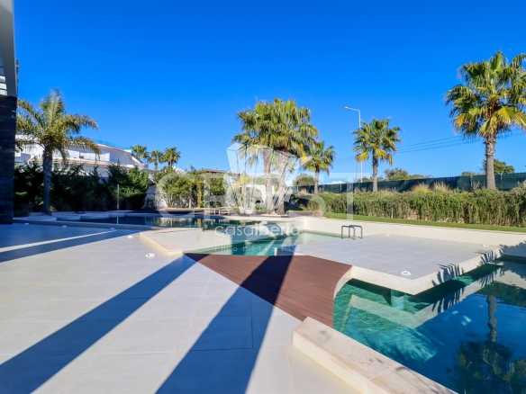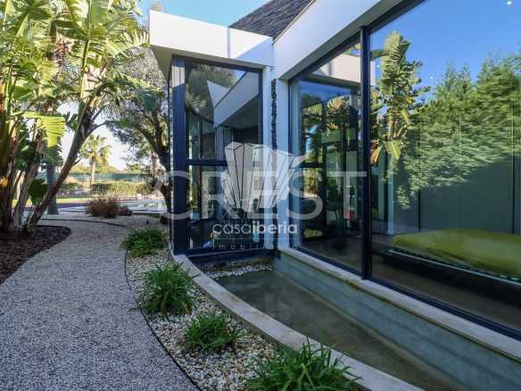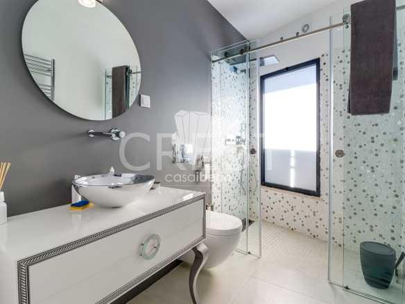 The entrance to this remarkable villa is distinguished by its elegance and grandeur, featuring a stunning water mirror that guides you harmoniously to the front door. This architectural element, in addition to creating a sophisticated visual effect, serenely reflects the house’s façade and its surroundings, offering a unique sense of harmony, warmth, and exclusivity from the very first moment.