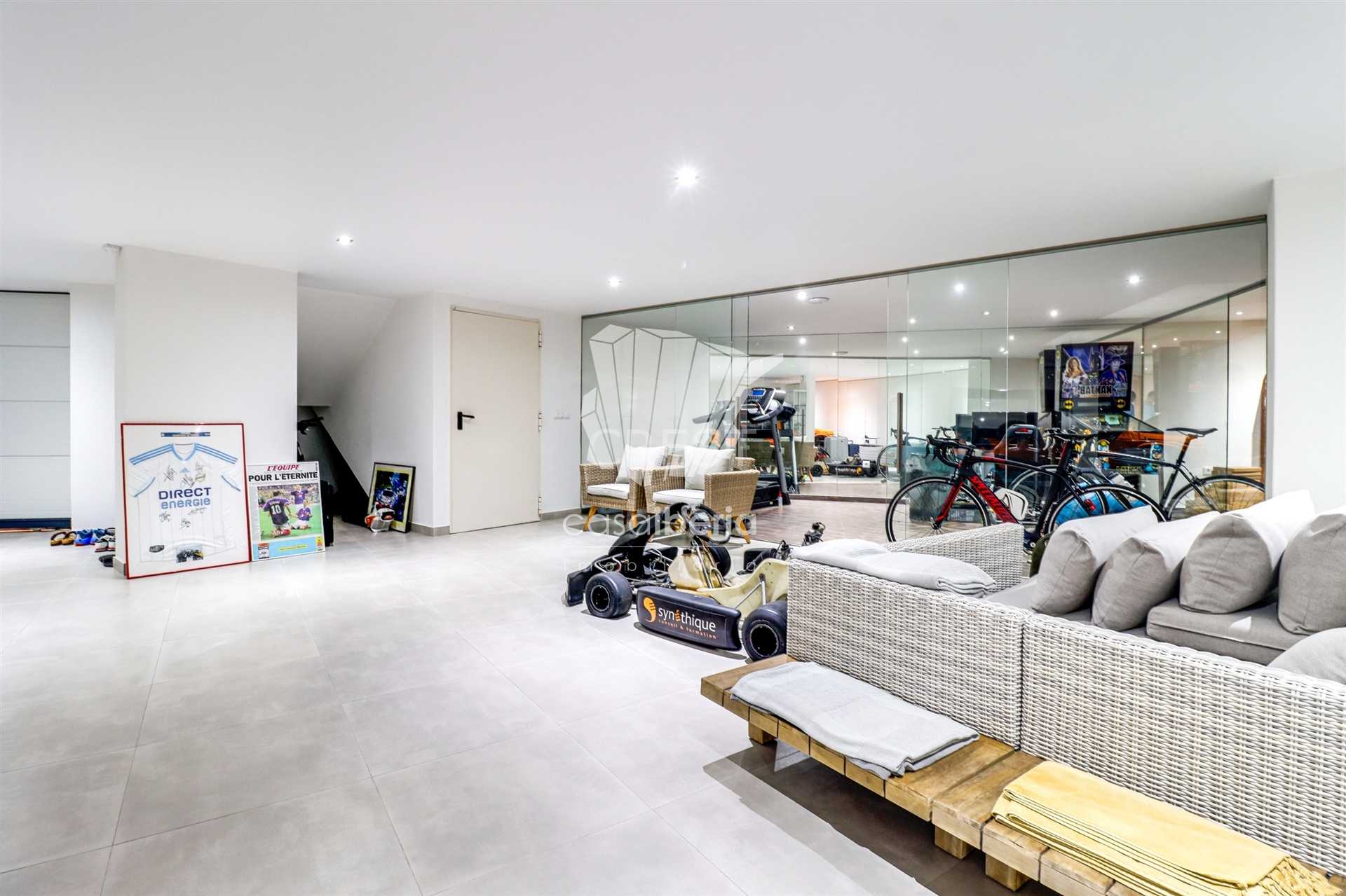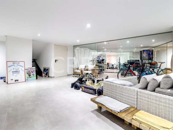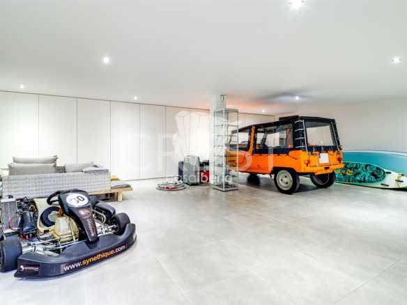 Additionally, the villa boasts a spacious garage for up to four cars, a machine room, a laundry room, a wine cellar, a gym, and a storage area — offering all the amenities for practical and comfortable living.
