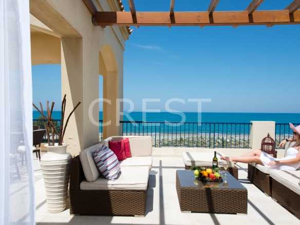 This exclusive development, conveniently situated in the prestigious area of Pirgos Psilonerou on the beach, boasts magnificent views of the Mediterranean Sea and the picturesque mountains. Extensive use of local materials and lush landscaped gardens of local character, ensure the development is at one with the environment.