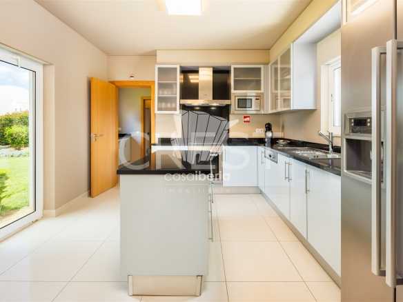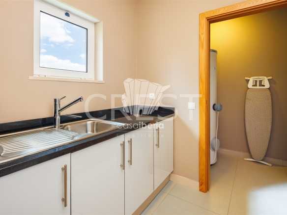 The villa also has a fully equipped kitchen with top appliances and ample storage space, complemented by a practical laundry room.
