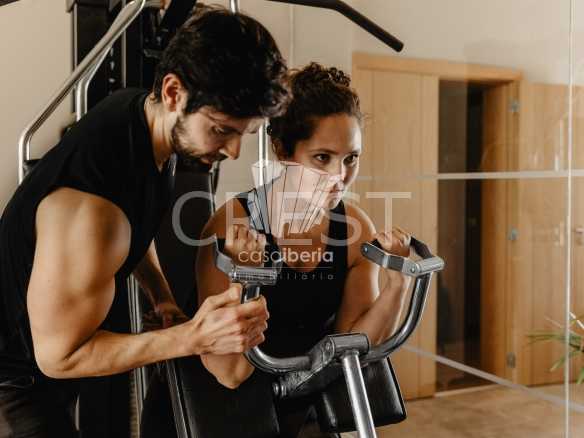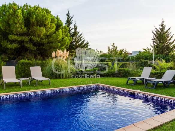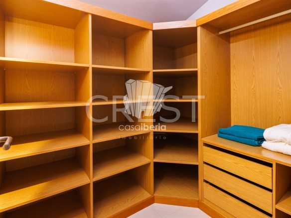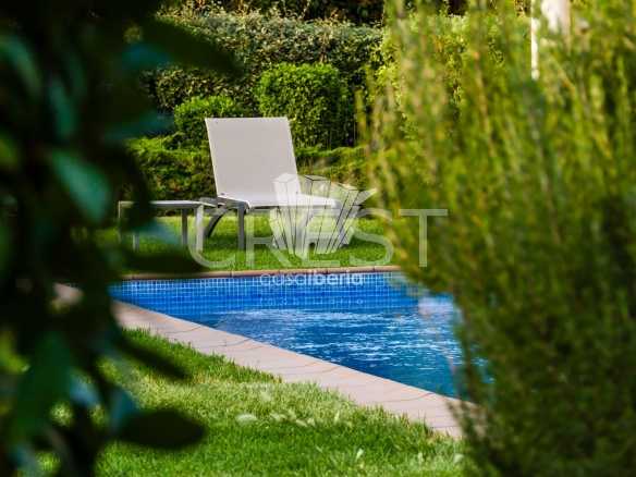 On the first floor, the master suite stands out for its spaciousness, with an en-suite bathroom, a spacious wardrobe and access to a private balcony. This room also offers access to an extensive terrace with stunning sea views. An elegant staircase connects this space directly to the garden and pool, creating the ideal environment to relax at the end of the day.