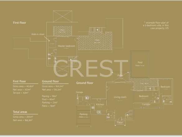 On the ground floor, you will find two en-suite bedrooms, both with direct access to the garden and pool area, offering a perfect balance between comfort and privacy.