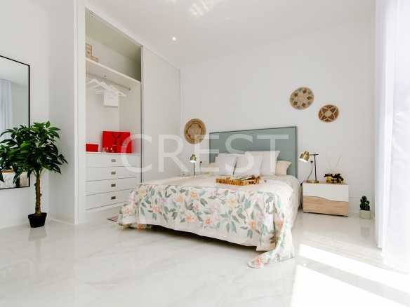 Each villa is situated on a beautiful plot and features a private swimming pool with an outdoor shower, a beautifully landscaped Mediterranean garden with artificial grass, decorative gravel, a fruit tree, and a palm tree, as well as a private parking space. Thanks to the air conditioning (pre-installation) and solar panels, you can enjoy comfort and energy-efficient living all year round.
