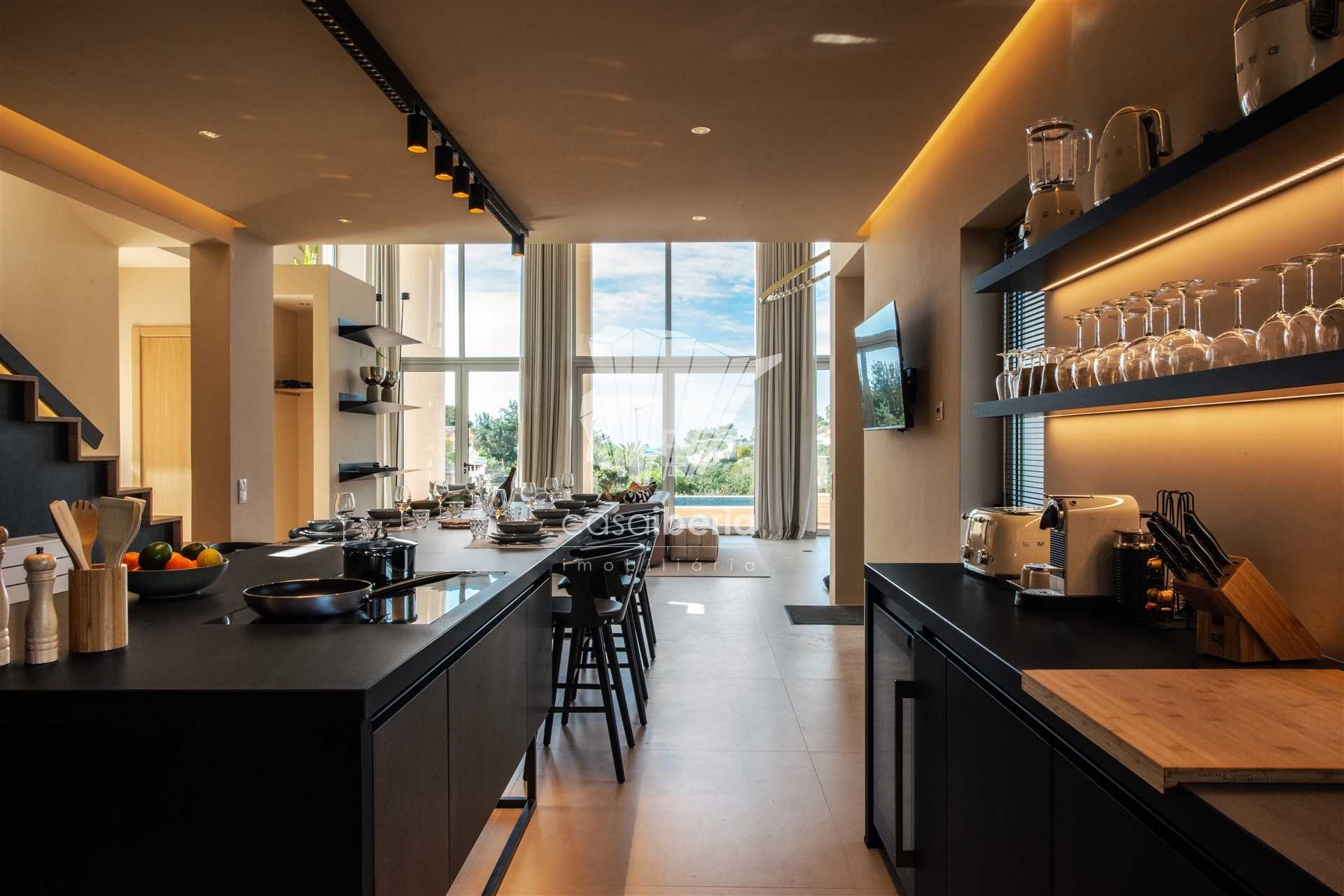 The open kitchen is fully equipped with the latest BOSCH technology.