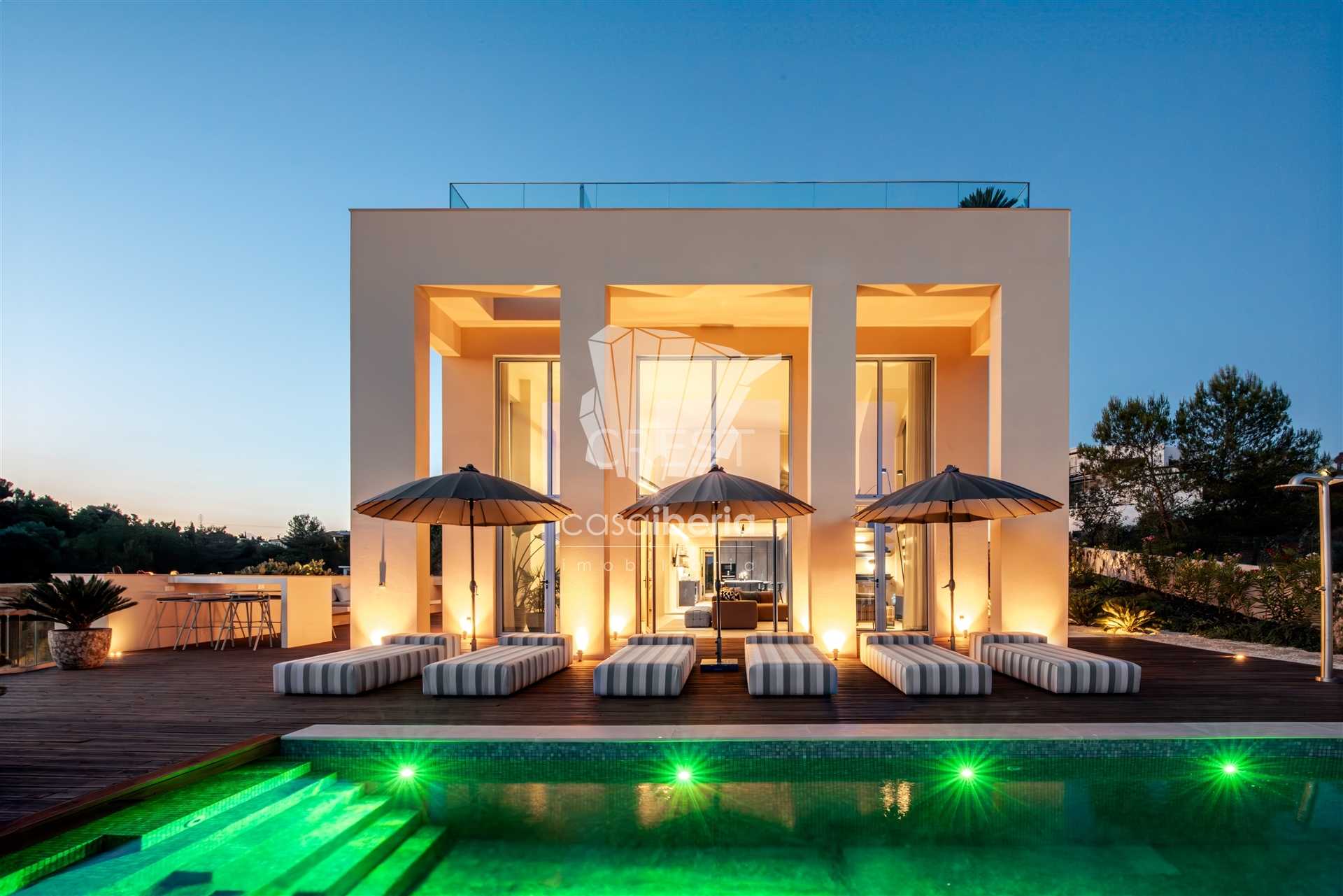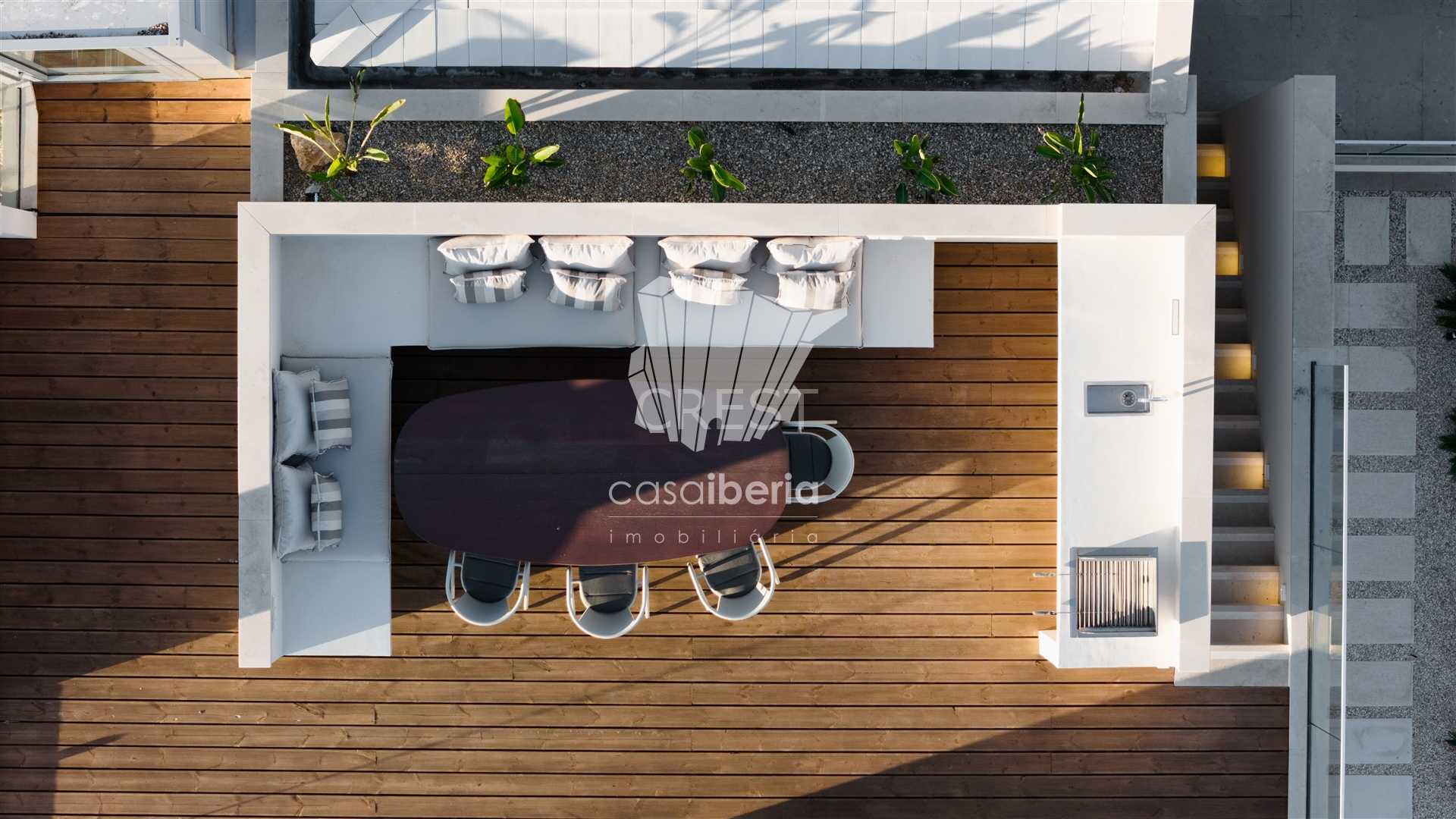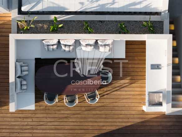 Located only two-hundred meter from the sea, the property has sea views from both of the main levels and the roof terrace.
