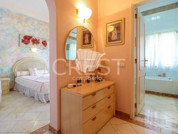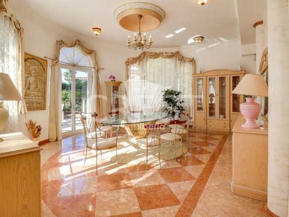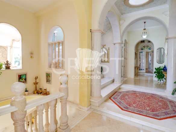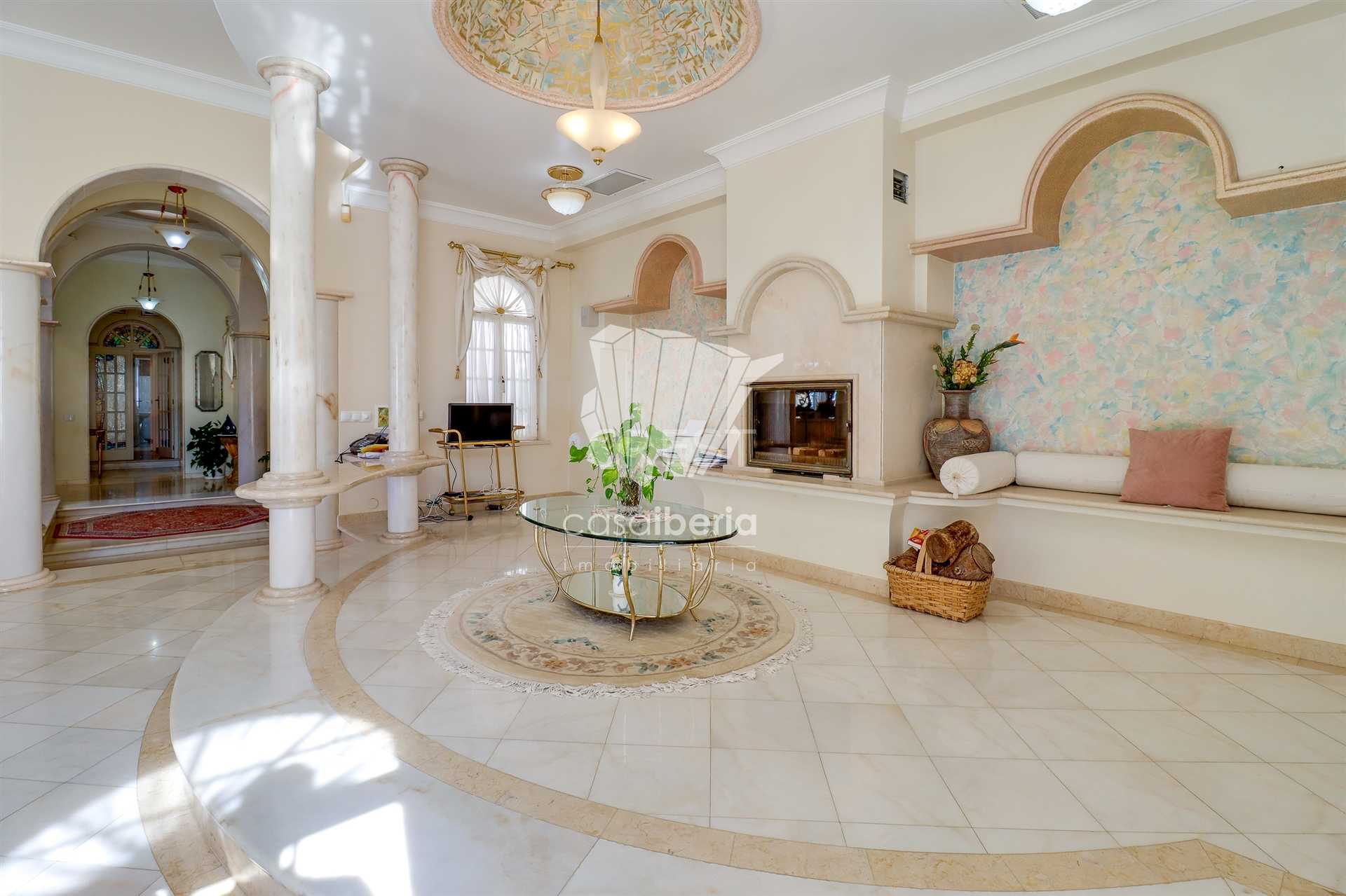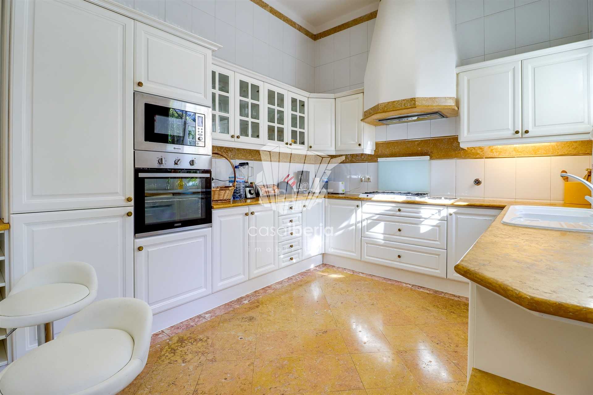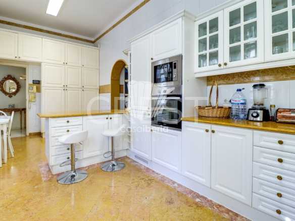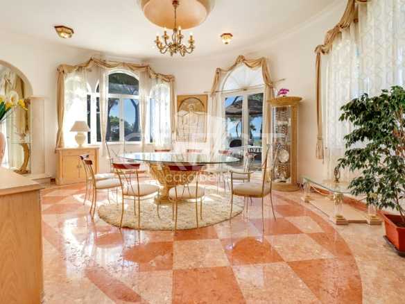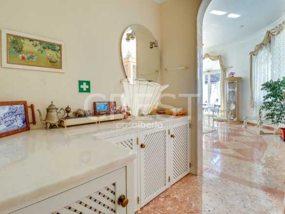 A spacious hall with soaring ceilings and a beautiful staircase leading to the upper level. A large, harmonious living room with fireplace and sea views opens directly onto the terrace and garden. The south-facing dining room offers a refined, light-filled setting. The fully equipped kitchen includes a pantry and separate laundry room .