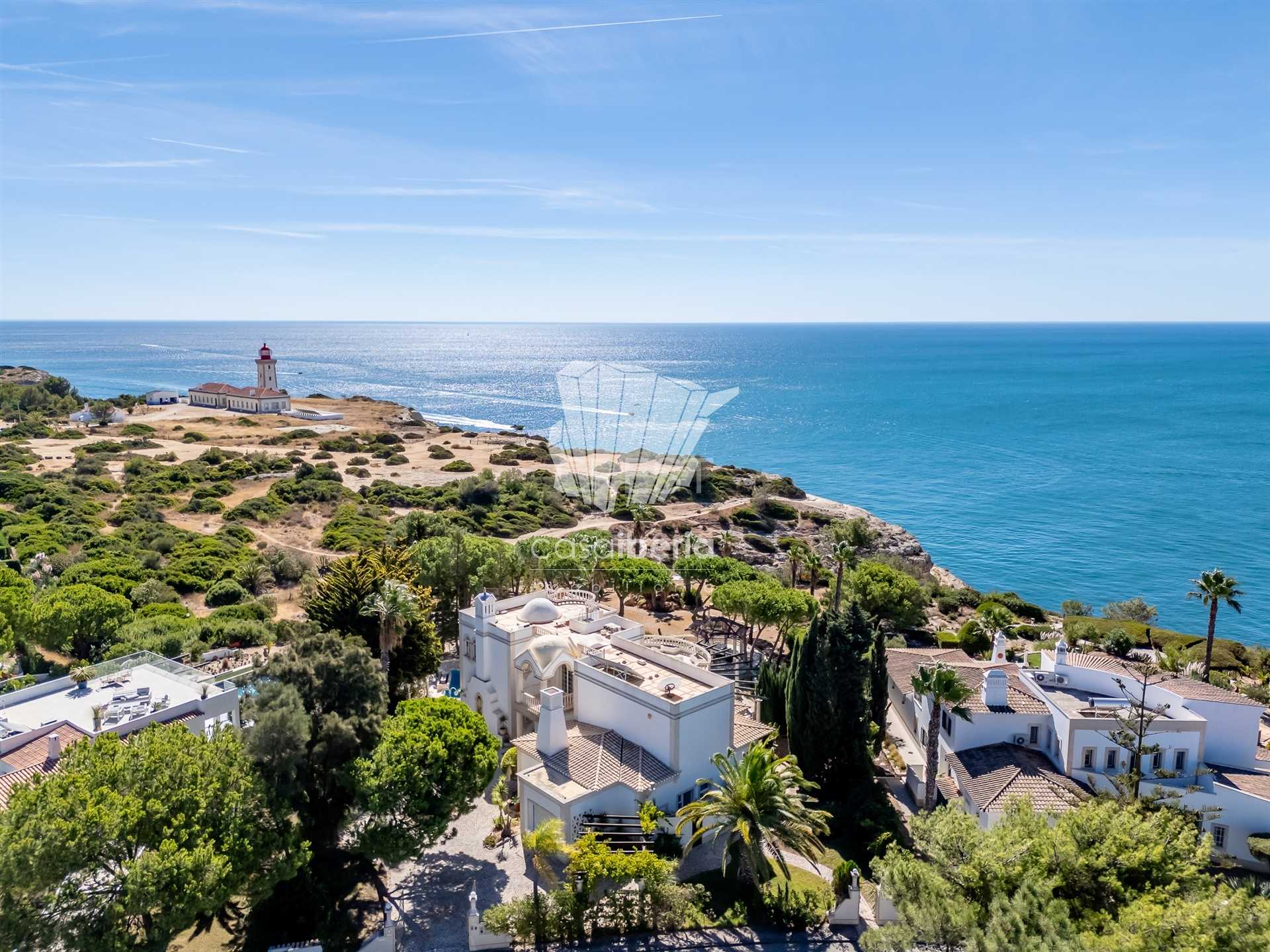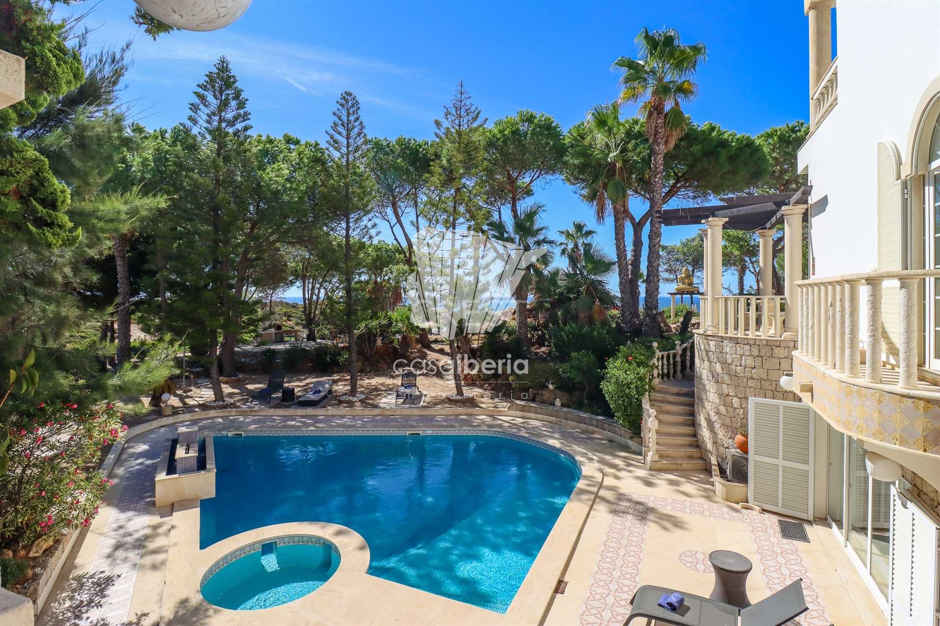 Set in a prestigious clifftop development in Carvoeiro, with the Atlantic Ocean stretching out in front and offering absolutely breathtaking views, this luxurious frontline property, designed in the style of a small palace , stands out as one of the most exclusive and rare offerings on the Portuguese real estate market.
