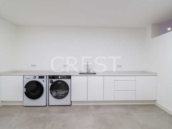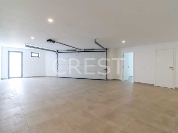 Garage with capacity for three vehicles, laundry room, technical area, additional bathroom, and a 120 m² area with potential for a cinema room, gym, or spa with pre-installation for a sauna and jacuzzi.
