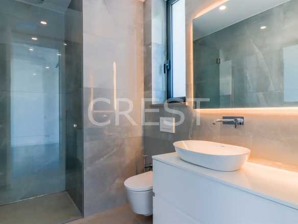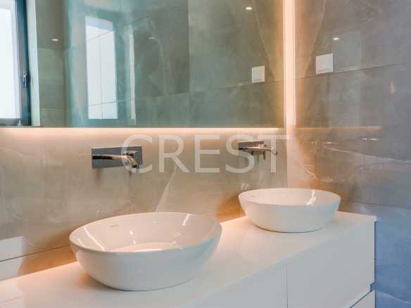 Includes four exquisite suites, two of which have direct access to private terraces. The outdoor area features a uniquely designed heated infinity pool, outdoor kitchen counter, and a leisure area with panoramic sea views.