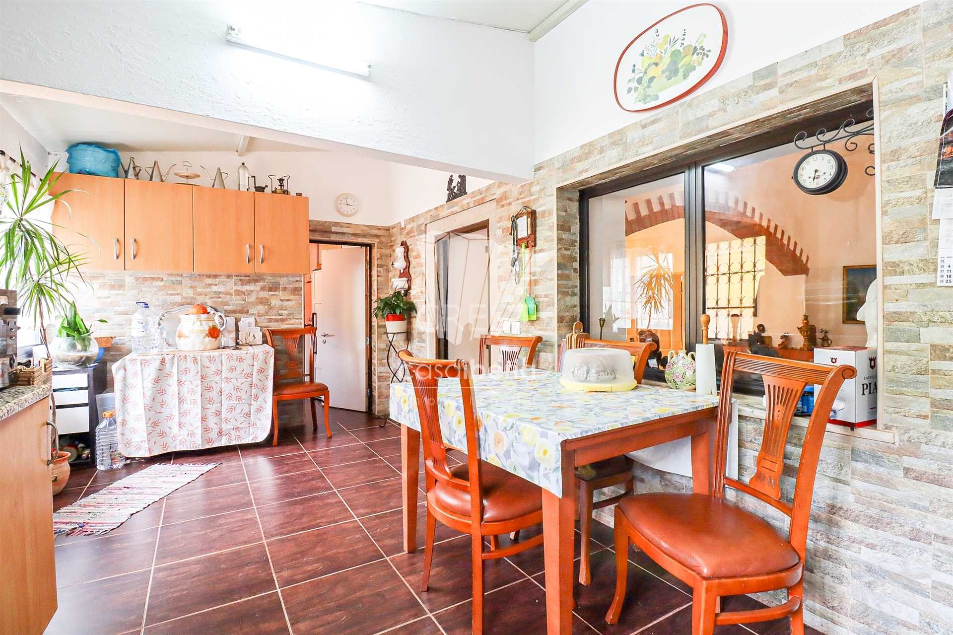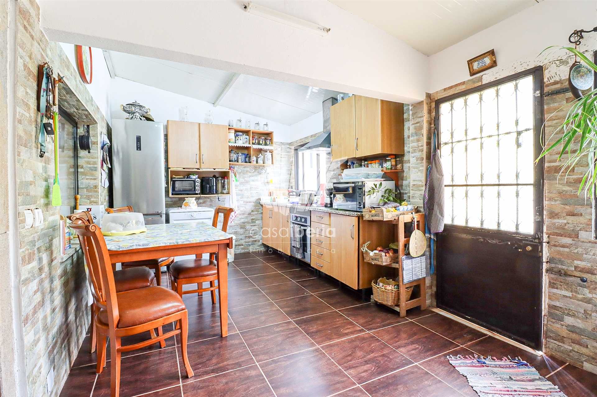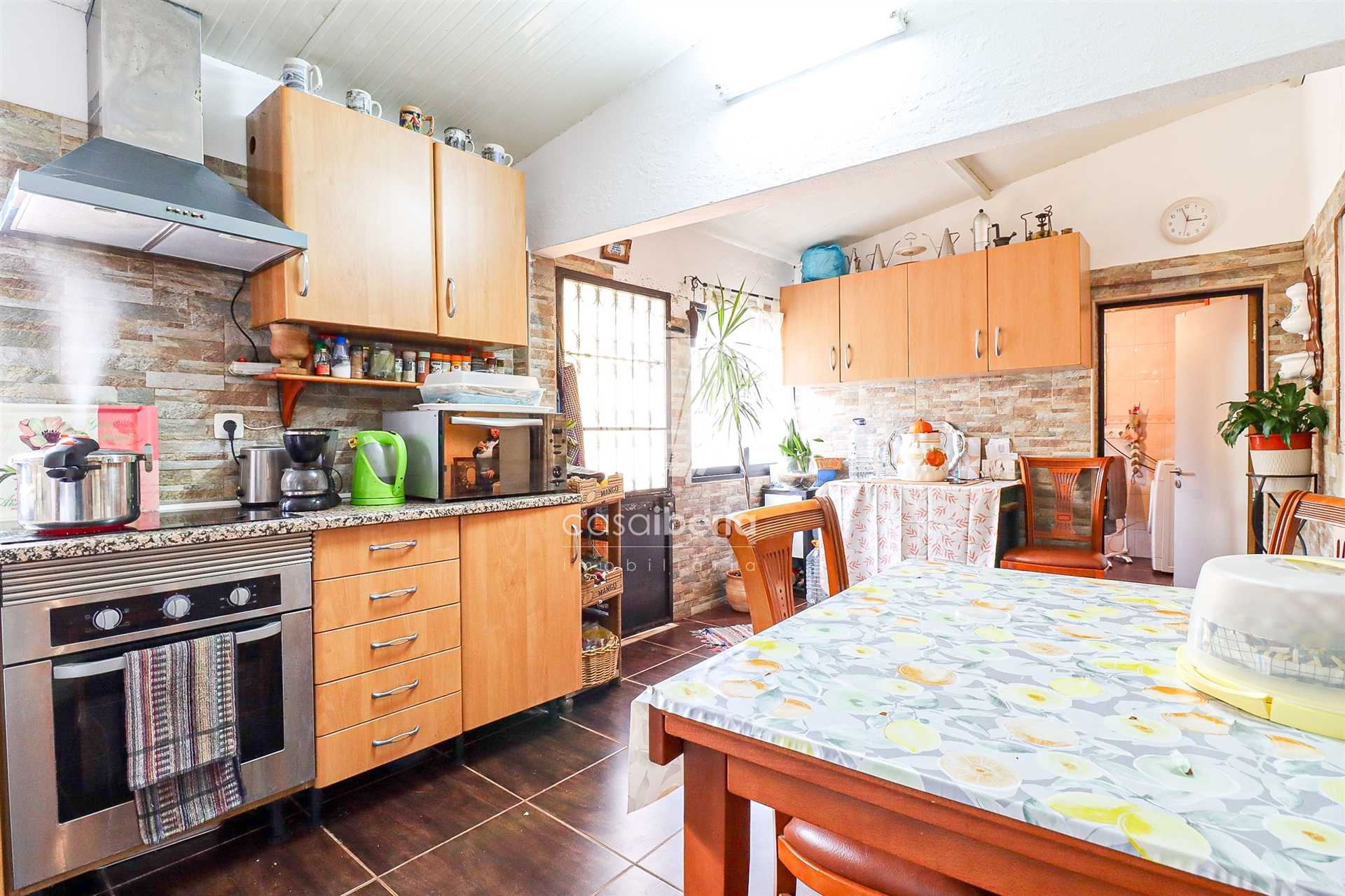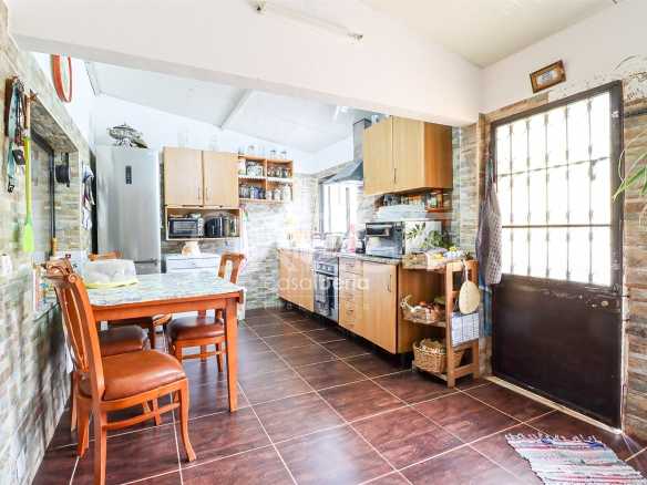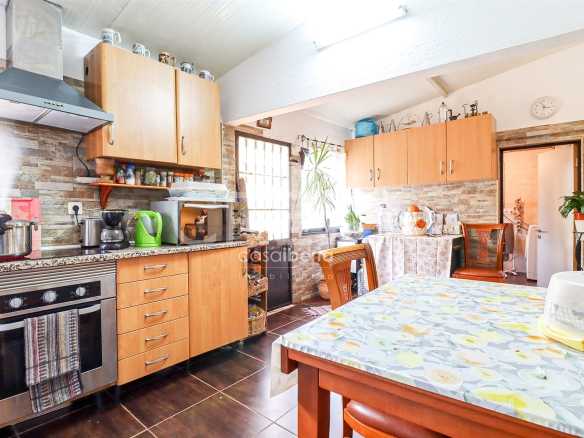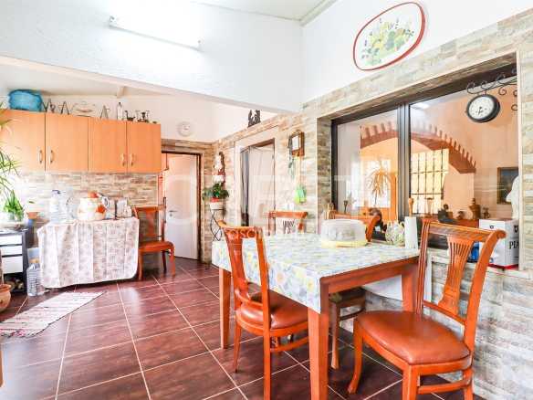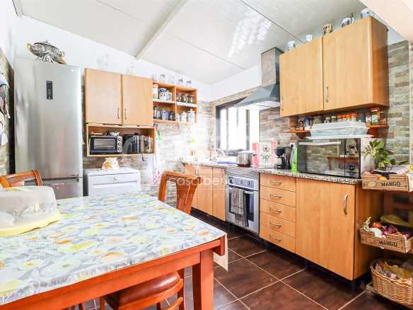 It comprises a kitchen, three bedrooms, two living rooms, two bathrooms, balcony, terrace, BBQ, garage, storage area, vegetable garden and free land. It has a well and bore hole in addition to the sewers and municipal water.