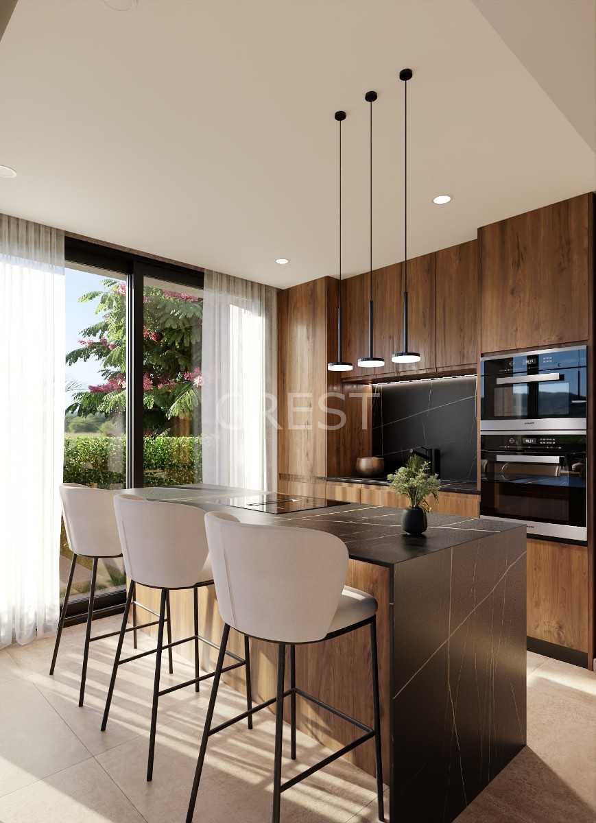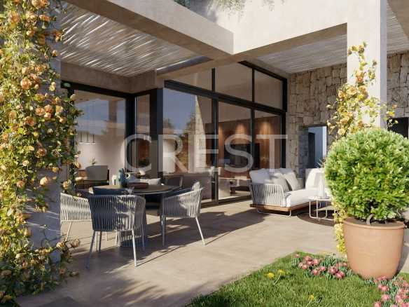 This contemporary three-bedroom, two-bathroom detached villa seamlessly combines luxury, comfort, and Mediterranean charm, all on a single level for effortless living. The expansive ground floor layout is meticulously designed to maximize natural light and enhance open-plan living. The master bedroom enjoys direct access to a private terrace, creating a secluded retreat for ultimate relaxation.The spacious living and dining areas flow seamlessly onto generous terraces, complete with a pergola, as well as additional open terraces—an idyllic setting for alfresco dining, relaxation, and entertaining.
