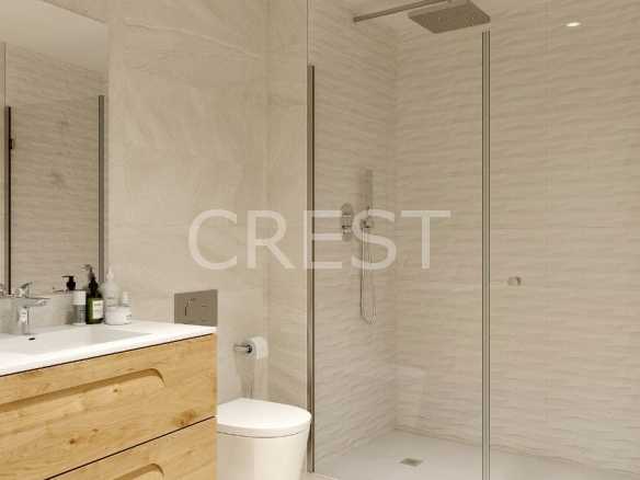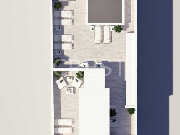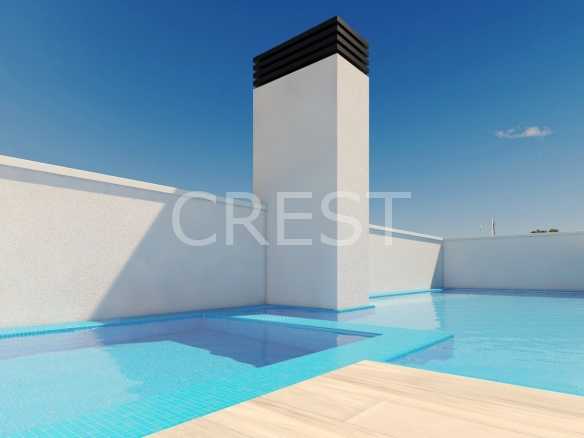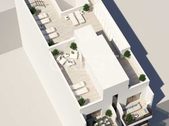 Enjoy spacious and bright living areas, a modern kitchen, 2 bathrooms, and a private terrace where you can relax in comfort. On the rooftop, you’ll find a stunning communal pool with panoramic views over the city and the Mediterranean Sea.These apartments are built with high-quality materials and come with pre-installation for air conditioning, ensuring year-round comfort.