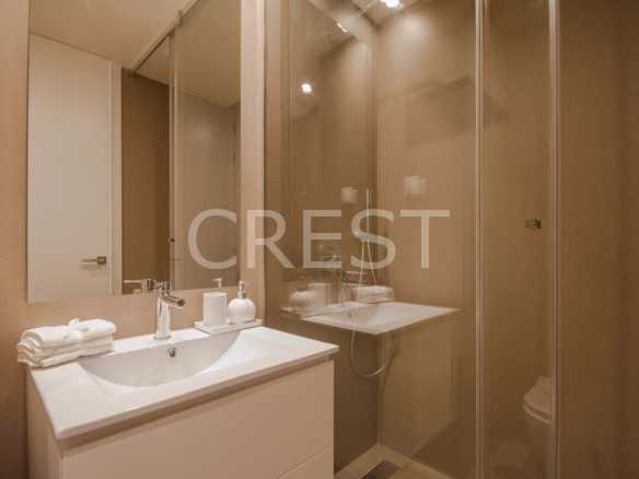 The apartment consists of living room and large kitchen in open space, two bedrooms (one en suite), terrace and garden.