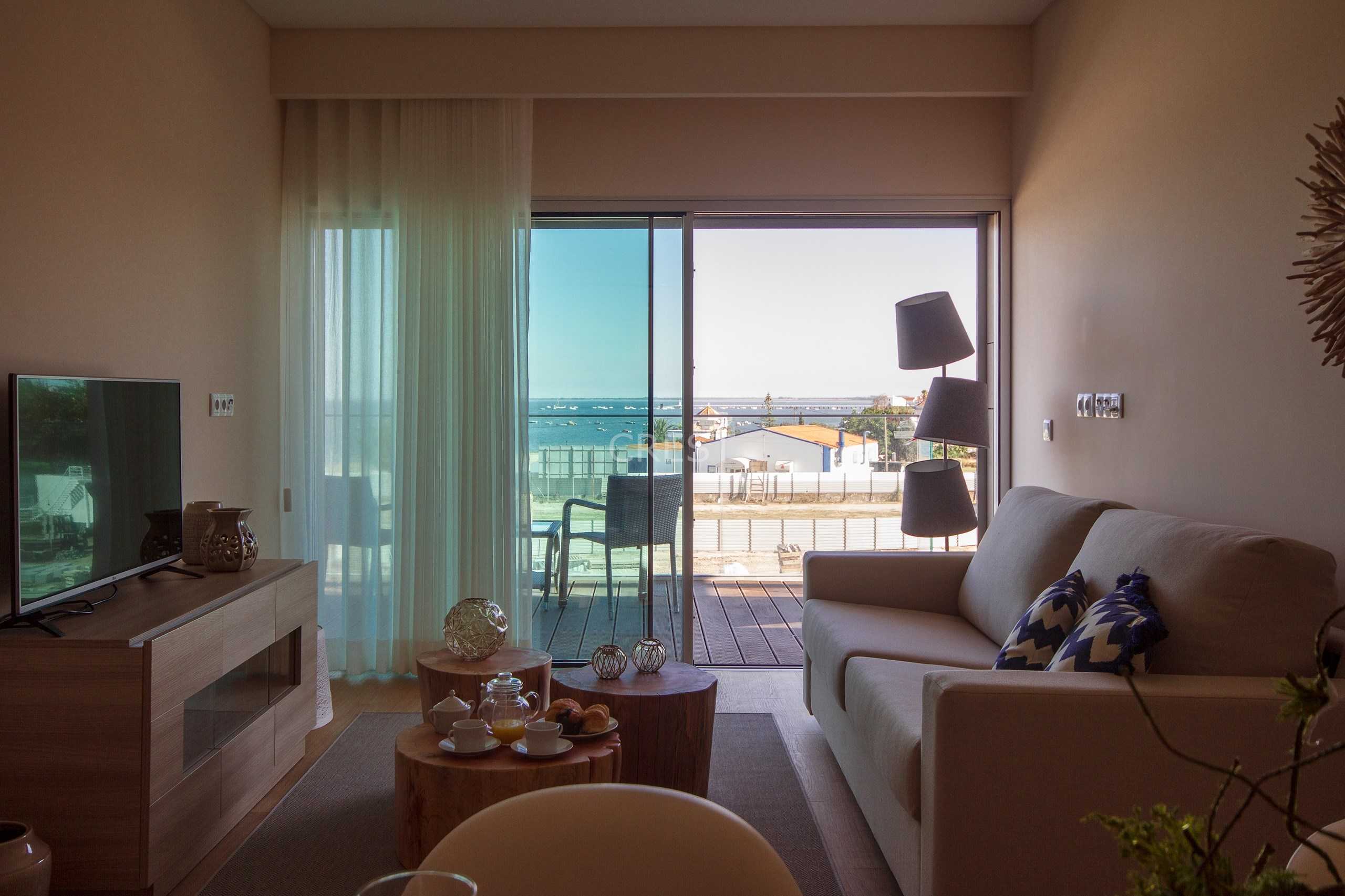 Fantastic T2 with views over the river and Lisbon. With a privileged location, the property is in a private condominium by the water.