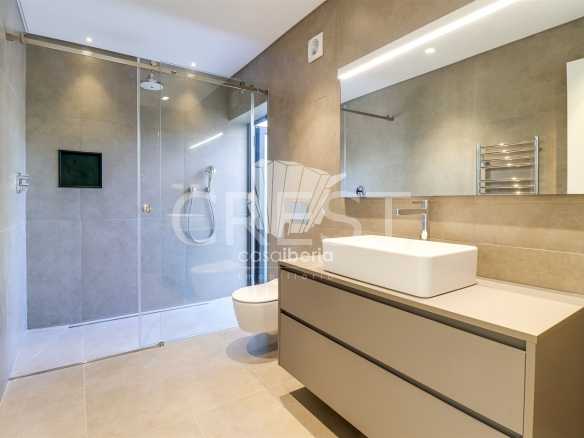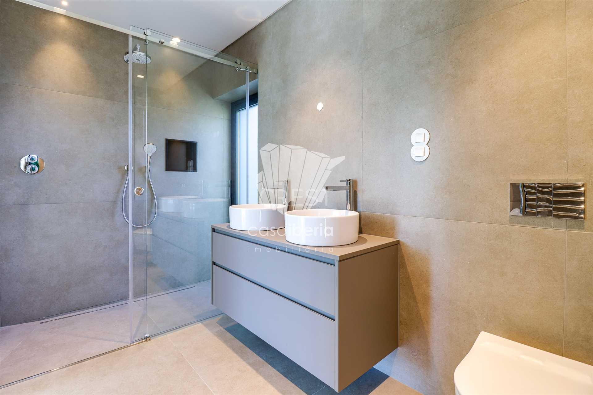On the ground floor, there are two spacious suites with walk-in closets, while on the first floor, there are two more, including the master suite. All bathrooms are equipped with an additional outdoor shower, ideal for enjoying during the hot summer months.