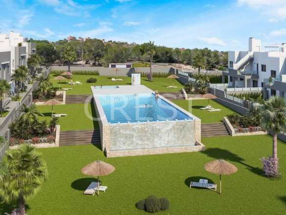 In San Miguel de Salinas, in the popular La Cañada area, lies a modern residence surrounded by a protected pine forest, between the golf courses of Campoamor and Las Colinas and not far from the coast. Here you can enjoy peace, nature, and the proximity of the Mediterranean Sea.